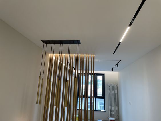 Теневой кант по периметру даёт иллюзию того, что потолок парит в пространстве.